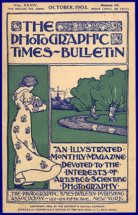 his beautifully designed, two color woodcut is on the cover of the 1902 Photographic Times Bulletin published by the Anthony & Scovill Company. I especially like the unusual typeface.