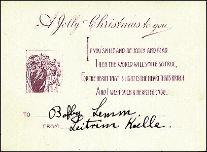 The "jolly" greeting inside this totally charming Victorian Christmas card is distinctly un-American. My best guess, judging from the names of the se